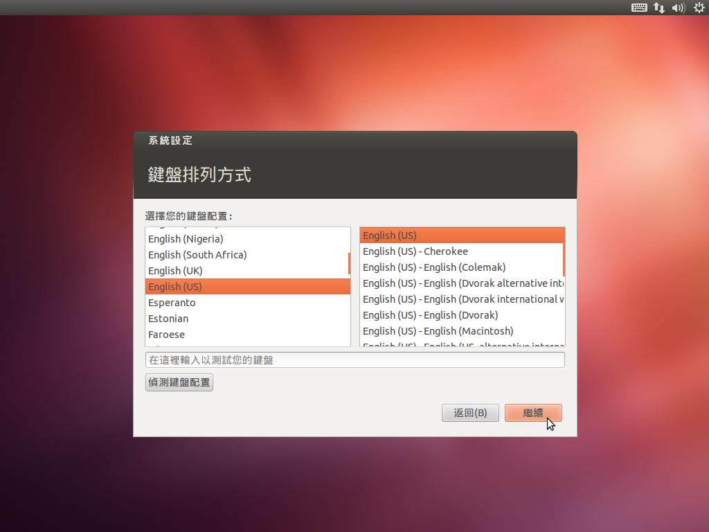 - 將隨身碟接上有裝 Ubuntu 的電腦,然後執行 `sudo su -c "cat mini.iso > /dev/sdb"`,其中 /dev/sdb 依實際情況調整