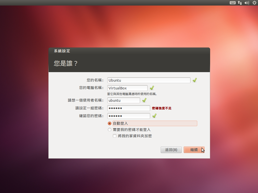 第一次啟動系統進行初始化設定